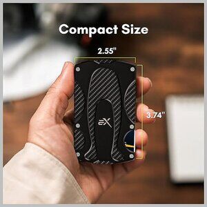 * Compactness & Utility : Measuring just 3.74'' x 2.55'', it's akin to a standard credit card holder in size, and weighing only 3.52OZ, it's even lighter than a chocolate bar. This minimalist wallet for men can easily fit into front pockets, backpacks, or glove compartments, and its special C-type card slot and stainless steel money clip make accessing your essentials a breeze.
