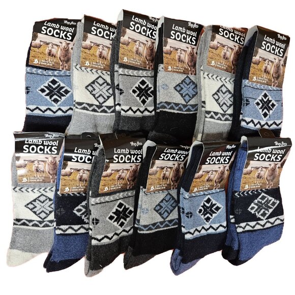 Mens Warm Wool Crew Socks 12 Pack Cold Weather Work Boot Outdoor Hiking Gear NWT