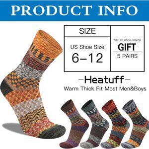 [WOOL CREW SOCKS FIT MOST]: Mens warm wool socks have crew height,which hugs mid calf perfectly,prevents the cold penetrating your legs and provides all-day long thermal.These warm wool socks fit USA mens shoe sizes 6-12,socks size 10-13,suitable for most men's feet.