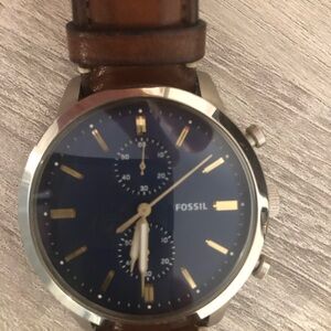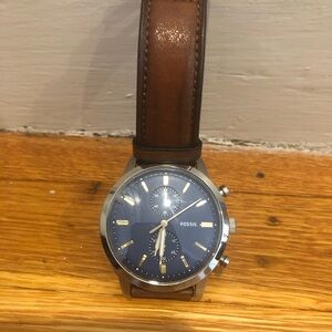 Men’s Fossil leather watch. Requires a new battery
