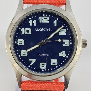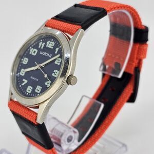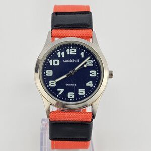 Men's Watch Watch it 35MM Blue Dial New Orange Black Canvas Bands New Battery