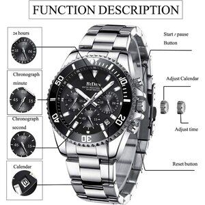 Mens Watches Chronograph Stainless Steel Waterproof Wrist Watches for Men