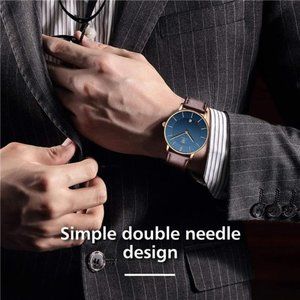 Mens Watches, Minimalist Fashion Simple Wrist Watch Analog Date w Leather Strap