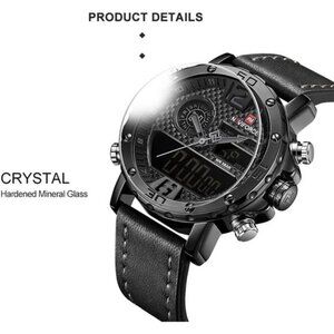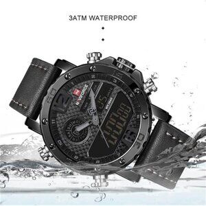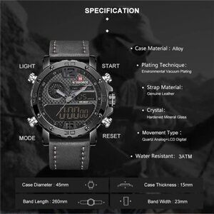 Mens Waterproof Sport Watches Leather Digital AnalogWatch Luxury Casual DualTime