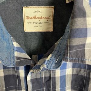 Men’s Weatherproof VintageBlue Plaid Button Down Shirt Size XL! In excellent conditions!