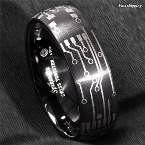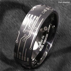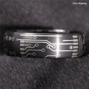 Men's Wedding Band - Dome Brushed Black Laser Circuit Board Ring for Men
