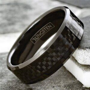 Men's Wedding Band Rings Black Carbon Fiber Inlay Wedding Rings for Men & Women