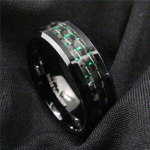 Men's Wedding Band Rings - Black and Green Carbon Fiber - Wedding Rings for Men