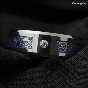 Men's Wedding Band Rings - Silver Celtic Dragon CZ Rings for Men and Women