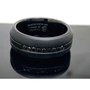 Men's Wedding Band Tungsten Steel Black Gemstones 9mm Wide Ring Size 10 (C6913)