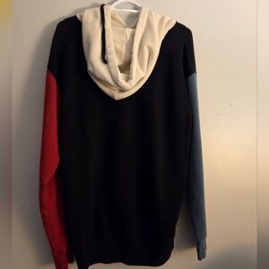 Stylish colorblock hoodie featuring a unique 'Welcome' design. Perfect for casual wear.
