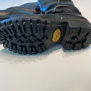 These boots are no joke, made for motorcycle riding or heavy duty work. 100% top grain leather, sturdy hardware, and Vibram sole for comfort.