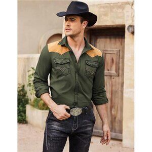 【Occasions】Western denim shirt for men for leisure, work, rodeo, theme party, cowboy music festival, concert, bar,dinner,country concert, wedding, show, and daily wear.The mens cowboy costume shirt is the best gift for father, friend or son