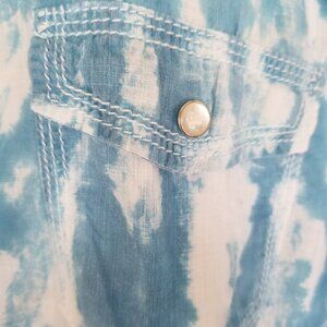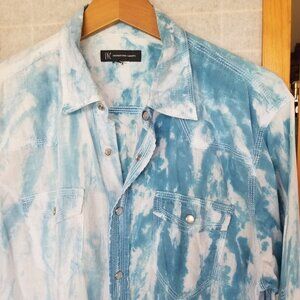 Men's Western Pearl Snap Shirt Size Large Tie Dye Clouds Roll-up Sleeves