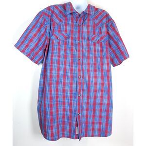 Men's Western Snap Shirt Sz. L Moon Shine Blue Red Short Sleeves