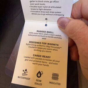 These snow bibs have a tough nylon shell that’s waterproof, windproof and warm. They're 4x more abrasion resistant than cotton duck with double-layer reinforcements at knees, cuffs and boot scuffs. 100% 3M™ Thinsulate™ insulation is quilted into the lining for lightweight warmth. The smooth taffeta lining won’t hang or bunch on whatever you’re wearing.