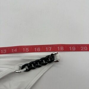 Stylish white bikini bottom featuring chic chain detail on the sides. Perfect for a beach day.