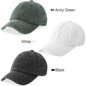 Men's White Green Black 3 Pack Plain Cotton Retro Adjustable Baseball Hat Cap