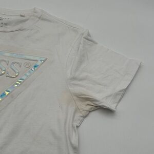 Pre owned, in good condition. The pits have stains, other than that the shirt is in okay condition 5.42
