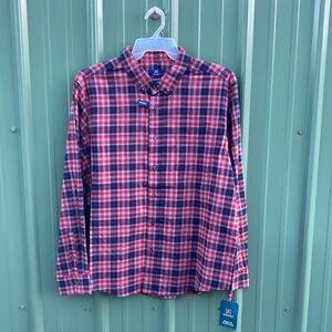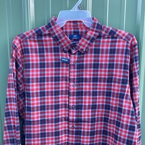 Men’s White Plaid Sleeve Poplin Button-Up Shirt Size XL