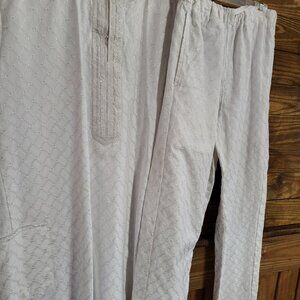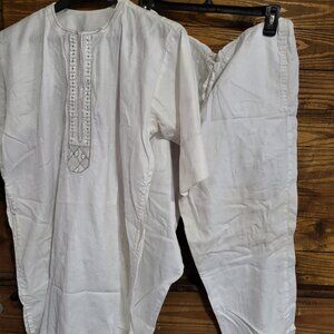 Embroidered around the neck of the shirt- Men's White Polish lace 2 piece Dashiki set.