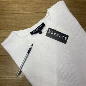Royalty Mens T-Shirt Size Large White Short Sleeve Ribbed Basic Tee NWT $39