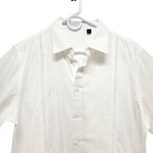 Mens White Short Sleeve Button-Up Shirt Size M Design In Italy Cotton Blend