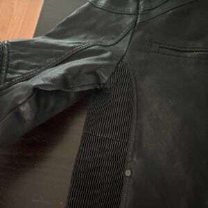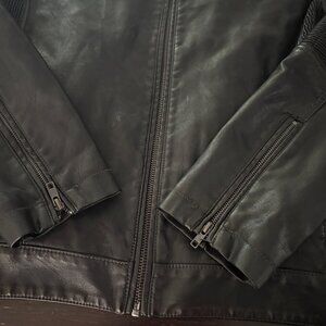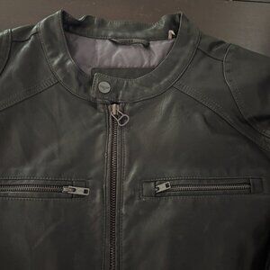 Mens Wilson Leather GIII Black Cafe Racer Polyurethane Biker Jacket Size Large