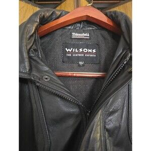 The product is a men's leather jacket in size L, designed by Wilsons for big and tall individuals. The jacket features a quilted style in black color, providing a classic and versatile outerwear option for men. Made with high-quality leather, this jacket is sure to offer both style and durability, making it a great addition to any man's wardrobe.