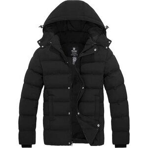 Mens Winter Coat Hooded Puffer Jacket Waterproof Warm Thicken Cotton Outerwear