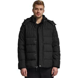 Protective Thermal Properties - Pull the adjustable hood of the puffer coat up to keep your ears and face warm. The winter jacket's collar, padding, ribbed elastic cuffs, and adjustable drawstring further keep you insulated against the frost.