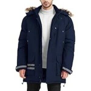 Mens Winter Hooded Parka Jacket With Reflective Stripes - Multiple Colors and Si