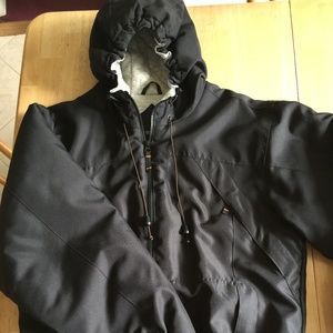 LIKE NEW (worn maybe twice) Mens winter jacket by Red Head from Bass Pro Shops. Size large in black with drawstring hood and 2 front slash pockets and 2 front hidden pockets. Frome a smoke free home.