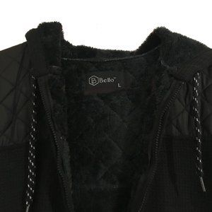 Men's Winter Quilted Fur-Lined Full-Zip Warm Sweater Hoodie Jacket, Black, L