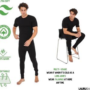 Mens Winter Ultra-Soft Fleece Lined Thermal Top & Bottom Underwear Set Size XL