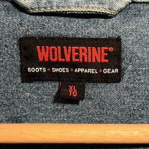 Mens Wolverine Heavy Denim Gusset Underarms Blue Cotton Button Down