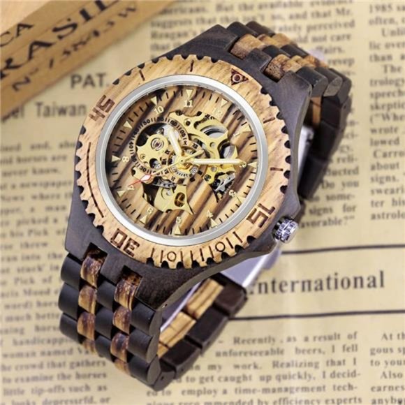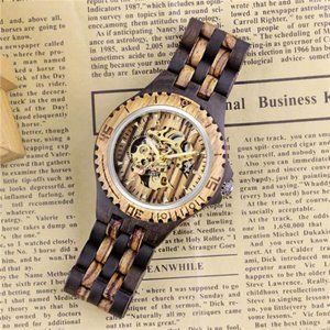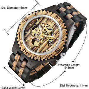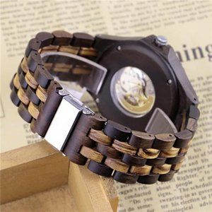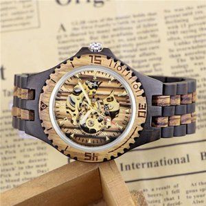 Men's Wooden Watch Skeleton Automatic Movement Wood Watch Self-Winding Watches
