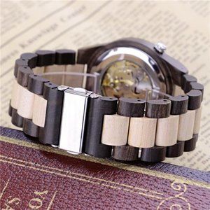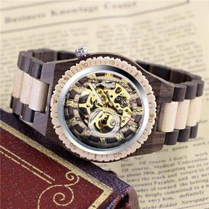 Men's Wooden Watch Skeleton Automatic Movement Wood Watch Self-Winding Watches