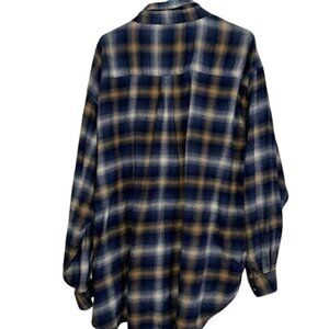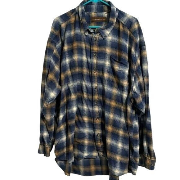 Mens Woodland Trail Blue & Tan Plaid Button-Up Shirt 3X Cotton/Rayon Blend Made
