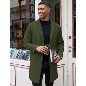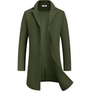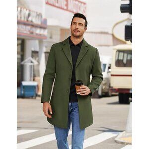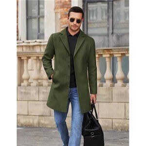 Mens Wool Blend Coat Winter Trench Coats Green