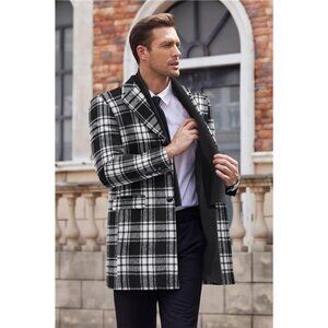 Men's Wool Blend Coat with Detachable Plaid Scarfs 2-black Plaid