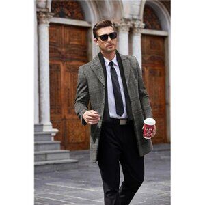 PRACTICAL POCKETS - 2 outside pockets, 2 inside pocket. Two flap pockets look classic and satisfy for ordinary requirement at the same time. You can put your hands in the pockets to keep warm and the pockets can also hold small items like leather gloves, sunglasses, phones, wallets or something else. This woolen pea coats features a large capacity inner pocket, which offer you enough capacity to store your cards or any other small belongings.
