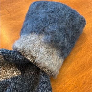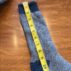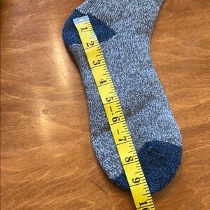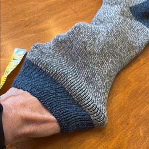 Experience comfort and warmth with these men's wool blend socks. Featuring a stylish gray and blue design, these socks are perfect for hiking and boots. Excellent condition- only worn once.