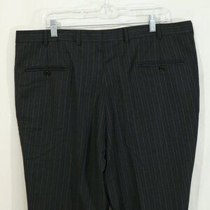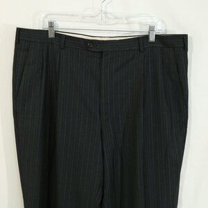 Men’s Wool Dress Pants Black Pinstripe Pleated Cuffed Trousers 39x29 Classic