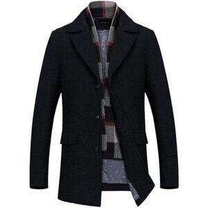 Mens WoolBlend Coat Winter Trench Coat with Detachable SoftScarf Single Breasted
