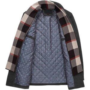 Design with Detachable Scarf: The INVACHI men's wool coat showcases a notched lapel design and a removable scarf, adding an element of elegance. Functional pockets and distinctive decorative elements underline its trendy style.