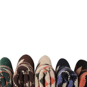 Perfect for the winter weather! 5-pairs of socks that are a blend of 61.2% Polyester, 31.6% Wool, 5.1% Cotton, 2.1% Spandex.