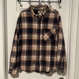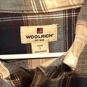 Men’s Woolrich Flannel Button Down Shirt Long Sleeve Size Large Brown Cream EUC