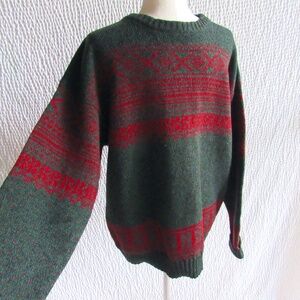 Mens Woolrich Wool Sweater XL Pullover Red Green Vintage Hong Kong Excellent
