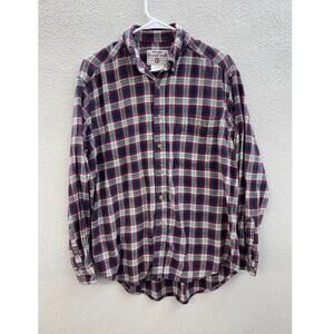 Mens Wrangler Flannel Shirt Large Rugged Wear Red Plaid Long Sleeve Button Up